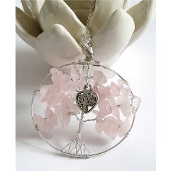 Halsband JULKLAPP Silverpläterad ROS, ROSENKVARTS Pärla Smycke kedja&smyckespåse