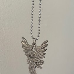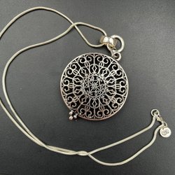 Ett vackert silverfärgat halsband med ett lotusblomma-hänge. Hänget har en röd detalj i mitten.
