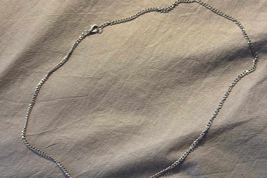 En silverfärgad halskedja. Perfekt för att hänga ett hänge på eller att bära som den är.