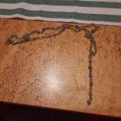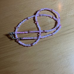 Fint halsband med imitations stenberlock. 44 cm lång totalt, men justerbart. Som det syns på bilderna är kedjan missfärgad, men ifall man orkar byta ut den kan det fortfarande vara ett elegant smycke!