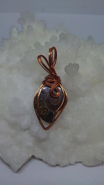 Underbart härlig Ammonit fossil med opaliserad baksida och små druzy fickor i fossilen.