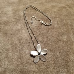 Halskedja i silverfärgad metall, omkrets ca 67 cm, inget lås.