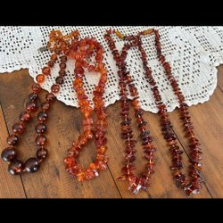 4 st halsband med olika berlocker. Kedjorna är 58-62 cm långa.