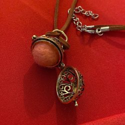 Aromaterapihalsband / diffuser som man öppnar genom att skruva. Inuti finns en filtdyna som man droppar sin eteriska olja på. Med följer tio stycken refillbitar.