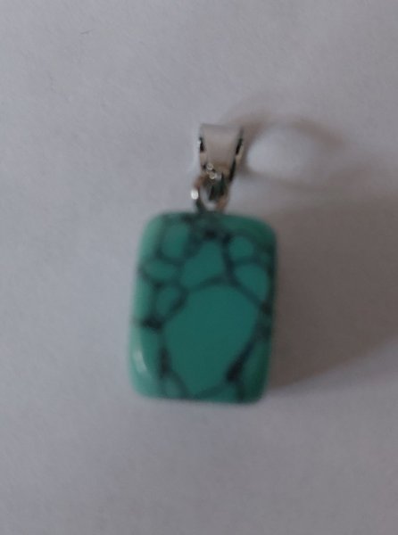Känns som glas men kan vara av annat material längd inkl ögla cirka 20-25mm Svart halsrem ingår 45 cm lång plus 5 cm förlängningskedja. VIkt cirka 5g Samfraktar givetvis.