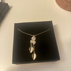 Silverfärgat halsband med ett hänge i form av vingar. Halsbandet har en klassisk kedja och ett spänne för att justera längden.