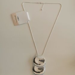 Fint halsband, längd ca 50,5 cm med hake. Hängets längd ca 10,5 cm som mest, bra begagnat skick.