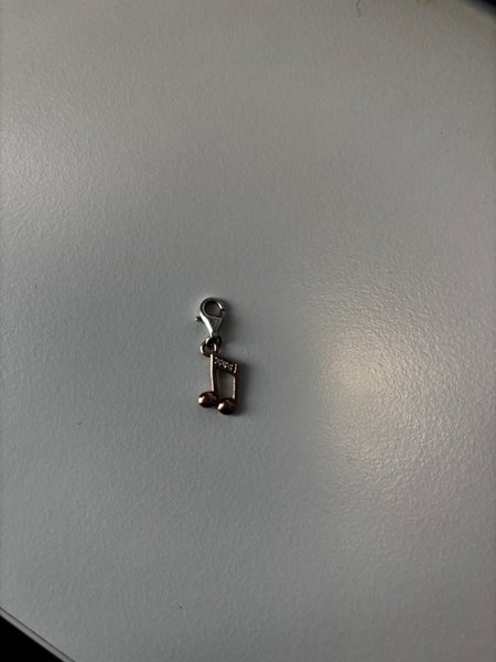Söt berlock i form av en musiknot. Den har en karbinhake för enkel fastsättning på armband eller halsband. Detaljer med små stenar.