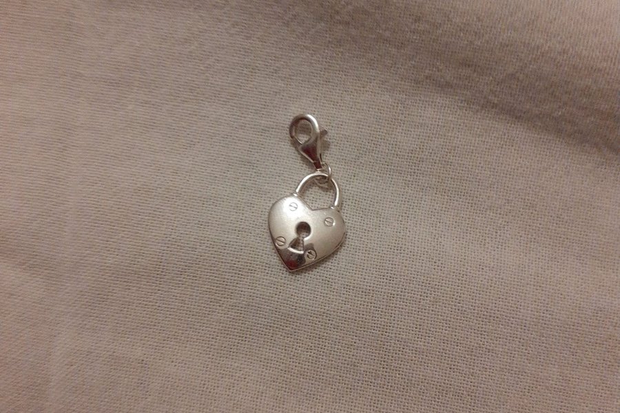 En berlock i silver format som ett hjärta med ett nyckel hål.