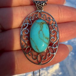 Jag tillverkade ett hängsmycken med en vacker krysokoll sten från södra Peru infattad i silver 9.25. Hänget är droppformat och allt är handgjort och en unik modell. Måtten på hänget är ca 6 cm på längden. Kedja ingår ej.