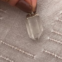 Bergkristall eller en annan sten i. Fina former runt om hänget och hänger i ögla.