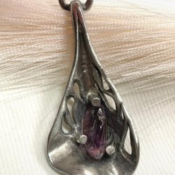 Bergkristall eller en annan sten i. Fina former runt om hänget och hänger i ögla.