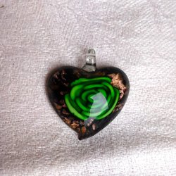 MURANO HÄNGE STORT HJÄRTA MED GRÖN ROS KONSTGLAS