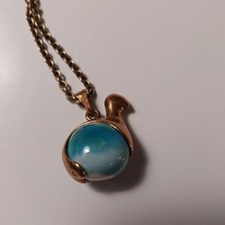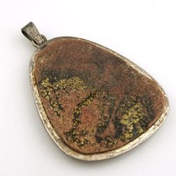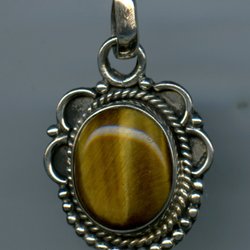 HÄNGE MED BRUNSKIMRANDE STEN. 2X1.5 CM. GOTT SKICK.