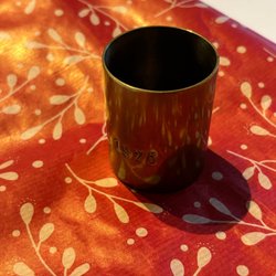 Fins stort hänge av glas - guld och bärnstens färgat - märkt 18k guldpläterad- mycket fint till jul eller nyår