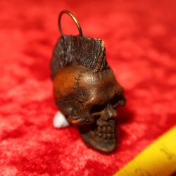 Vackert handgjort halssmycke i glas. Rött och gult med skimmer i blå/lila. Ca 5 cm långt.
