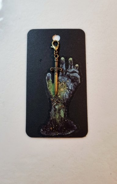 En brons svärdhänge. Kan hänga på nyckelring, dragkedjan, ryggsäck, väskhänge, mobilsmycke, m.m.. Cirka 4,5cm. Perfekt för dig som älskar svärd och fantasi.