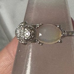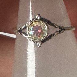 Söt ring med lila stenar formade som en blomma. Ringen är silverfärgad och har små klara stenar på bandet.