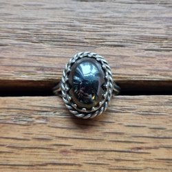 Vintage ring silver 830 med en avlång grön sten