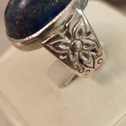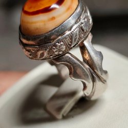 En vintage dam silverring med äkta bärnsten , ringen dtemplad med diver 925.