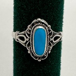 Elegant silverring 925 med en vacker äkta turkos sten. Ringen har detaljerade blomstermotiv på sidorna. Perfekt för den som söker en unik och stilfull accessoar.