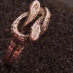 Silverring stämplad 925 och GFAB, med dekorativa spiraler och en infattad sten.