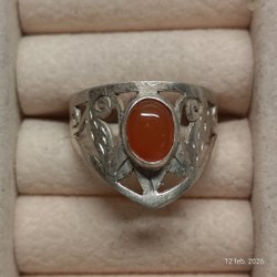 Innerdiameter är cirka 17 mm. Ringen har ett dekorativt och något etniskt uttryck och upplevs som gediget tillverkad. Normal begagnad patina förekommer, se bilder för egen bedömning.