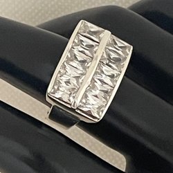 Elegant ring i silverfärgad metall med gnistrande stenar. Justerbar storlek.