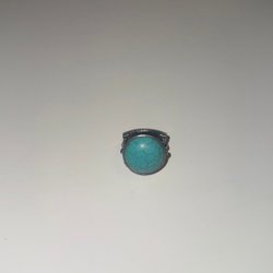 Snygg ring med en stor turkos sten. Ringen har en detaljerad design runt stenen och på sidorna. Perfekt för att lägga till en unik touch till din stil. Möjligen från Indiska.
