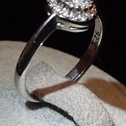 Innermått 17,5mm. Märkt 925. 2 rader med stenar som glittrar i ljus och en smal sträng i mitten som ser ut som guld (ingen guldstämpel)