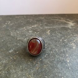 Vacker ring med stor gulaktig ”sten” och fina detaljer. Diameter: ca 18 mm. Den är köpt på en second hand-butik i Paris 2015.