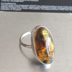 Silverring med en fin bärnsten som innehåller en gammal spindel av något slag. Den var personligt gjord för mig men är inte i behov av den längre. Som ni vet är bärnstenar minst 20 miljoner år gamla så det är lite cool att den spideln i ringen är utdöd.