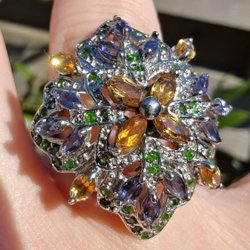 En magisk ring för dig som bär universums djup och visdom inom dig. "Nattens Drottning" är en sagolikt vacker och detaljrik statementring i äkta silver. Huvudstenens intensiva, kungsblå färg omfamnas av en exceptionell infattning där klara, rosa och stjärngula stenar bildar en himmelsk krona. Ett smycke för dig som vill ha något genuint unikt och iögonfallande som verkligen berättar en historia.