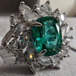 Himmelsk Lyster: Runt Zultaniten sitter en krans av 5A Kubisk Zirkonia. Detta är den högsta kvalitetsgraden i världen (Superior Grade), med en klarhet och briljans som matchar de finaste diamanterna.