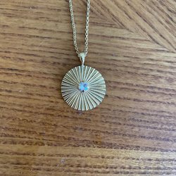 Så snygg 18k guldpläterad ring med mjölkig sten (aurore boreale) från Carloline Svedbom. Sparsamt använd i mycket fint skick. Justerbar storlek.