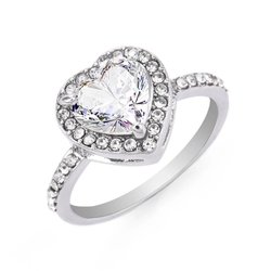 Silverpläterad ring med vita stenar. Storlek syns i bilderna. Ask ingår ej.