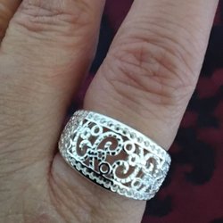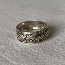 En vacker silverring med en intrikat och dekorativ design.