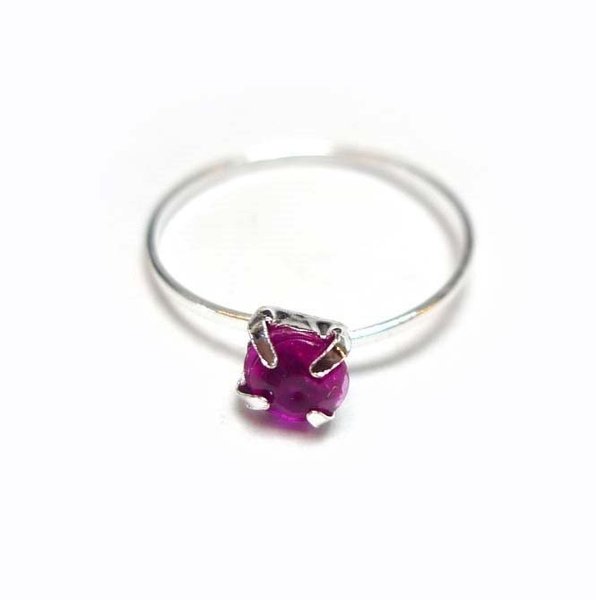 Barnring Silverpläterad Cerise sten