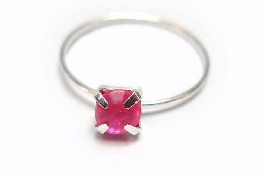 Ring av silverpläterad metall och syntetisk färgad sten.