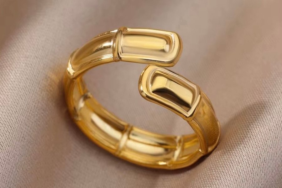 Guldpläterad ring i justerbar storlek. Elegant design som passar till olika tillfällen.
