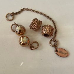 Guldfärgad med gröna strassdetaljer.