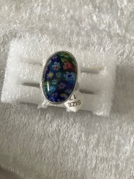 Snygg silverfärgad ring med en stor blommor sten. Storlek 17. Perfekt accessoar för alla tillfällen.
