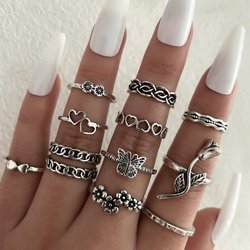 12-pack Boho Silver Ringar