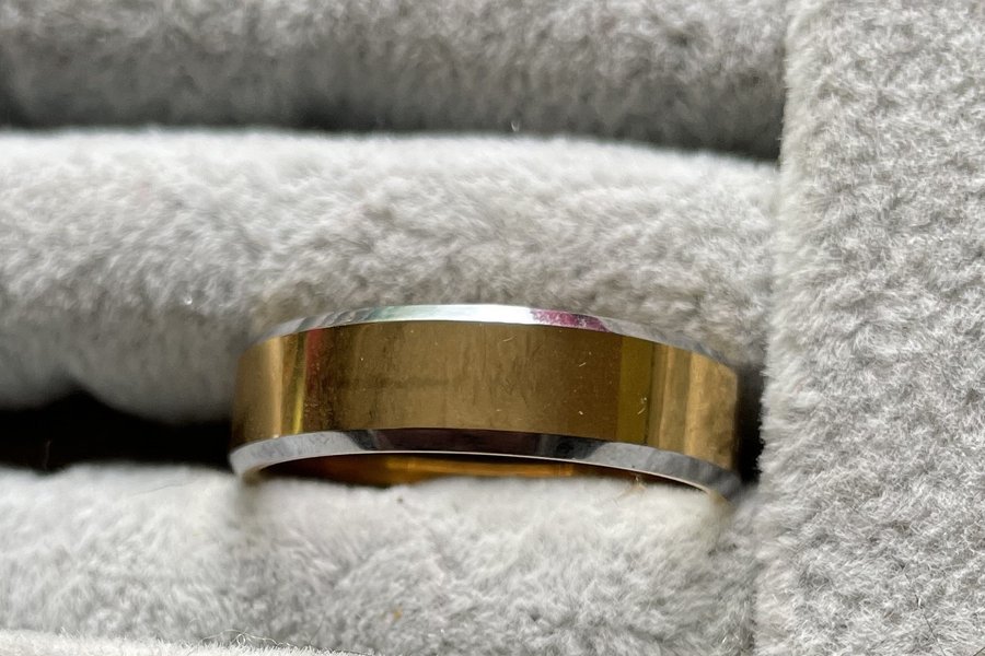 Tungsten / volframkarbid: Hårdaste metallen på jorden, 9 på Mohs hårdhetsskala, näst efter diamant med hårdhet 10. 5 gånger så hårt som stål och 10 gånger så hårt som guld. Vill du ha en ring som varar hela livet och inte blir repig så är tungsten ett bra alternativ. 18,1mm i diameter och 8mm bred.