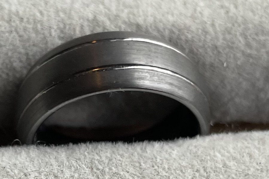 Tungsten / volframkarbid: Hårdaste metallen på jorden, 9 på Mohs hårdhetsskala, näst efter diamant med hårdhet 10. 5 gånger så hårt som stål och 10 gånger så hårt som guld. Vill du ha en ring som varar hela livet och inte blir repig så är tungsten ett bra alternativ. 17,3 mm i diameter och 8mm bred.