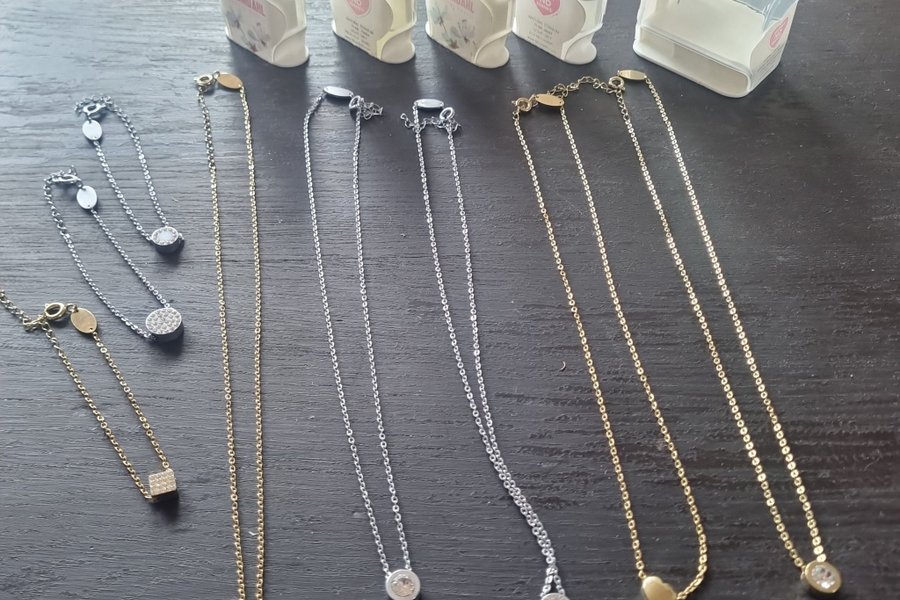5 halsband.3 armband. 5 örhängen
