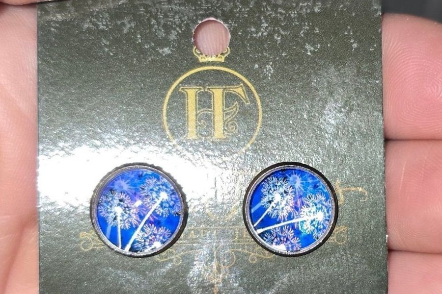 Ett par örhängen med ett vackert blått motiv. Perfekt för att komplettera din stil.