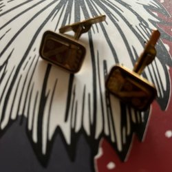 Manschettknappar i svart och guldfärg.