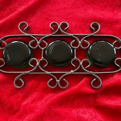 Ett par rektangulära manschettknappar med en liten röd detalj i mitten.
