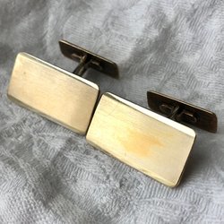 Ett par manschettknappar i silver med svarta stenar.
